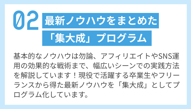 アフィリエイトの初歩的な知識から、本質的な知識まで学ぶことができます。